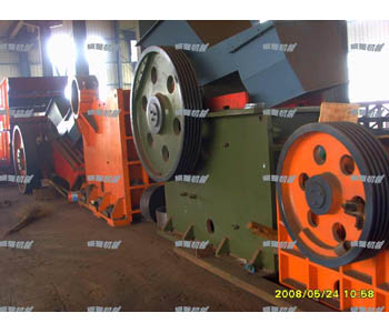 顎破為曲動(dòng)擠壓型,電動(dòng)機(jī)驅(qū)動(dòng)皮帶和皮帶輪,通過(guò)偏心軸使動(dòng)顎上下運(yùn)動(dòng),當(dāng)動(dòng)顎上升時(shí)肘板和動(dòng)顎間夾角變大,從而推動(dòng)動(dòng)顎板向定顎板接近,顎破是以電動(dòng)機(jī)為動(dòng)力,通過(guò)電動(dòng)機(jī)皮帶輪,由三角帶和槽輪驅(qū)動(dòng)偏心軸,使動(dòng)顎按預(yù)定軌跡作往復(fù)運(yùn)動(dòng),從而將進(jìn)入由固定顎板、活動(dòng)顎板和邊護(hù)板組成的破碎腔內(nèi)的物料予以破碎,并通過(guò)下部的排料口將成品物料排出。與此同時(shí)物料被擠壓、搓、碾等多重破碎;當(dāng)動(dòng)顎下行時(shí),肘板和動(dòng)顎間夾角變小,動(dòng)顎板在拉桿、彈簧的作用下離開(kāi)定顎板,此時(shí)已破碎物料從破碎腔下口排出,隨著電動(dòng)機(jī)連續(xù)轉(zhuǎn)動(dòng)破碎機(jī)動(dòng)顎作周期性的壓碎和排料,實(shí)現(xiàn)批量生產(chǎn)。