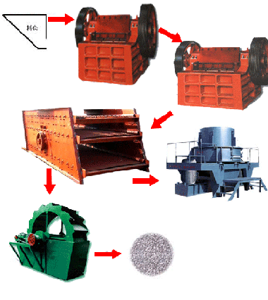 沙石生產(chǎn)線,砂石生產(chǎn)線,砂石生產(chǎn)線設備,砂石線,砂石生產(chǎn)設備基本流程:大塊石料經(jīng)料倉由振動給料機均勻地送進鄂式破碎機進行粗碎,粗碎后的石料由皮帶輸送機送到反擊式破碎機進行進一步破碎;不滿足粒度要求的石子由皮帶輸送機返料送到反擊式破碎機進行再次破碎,形成閉路多次循環(huán)。細碎后的石料由皮帶輸送機送進振動篩進行篩分,篩分出幾種不同規(guī)格的石子,滿足粒度要求的石子由成品皮帶輸送機送往成品料堆;成品粒度可按照用戶的需求進行組合和分級,為保護環(huán)境,可配備輔助的除塵設備。
