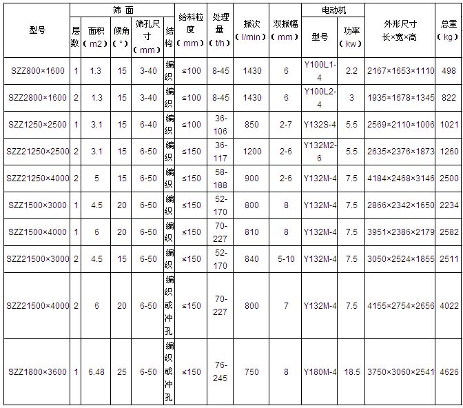 SZZ型自定中心振動篩技術(shù)性能及參數(shù)