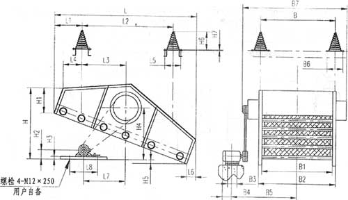 圖6 SZZ21500×4000自定中心振動篩安裝尺寸