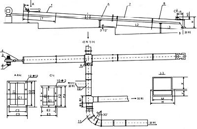空氣斜槽輸送機由數(shù)個薄鋼制成的槽子聯(lián)接組成,并沿其輸送方向布置成一定的斜度??諝廨斔托辈鄄垠w沿著輸送方向安裝成向下傾斜4%~6%的斜度。