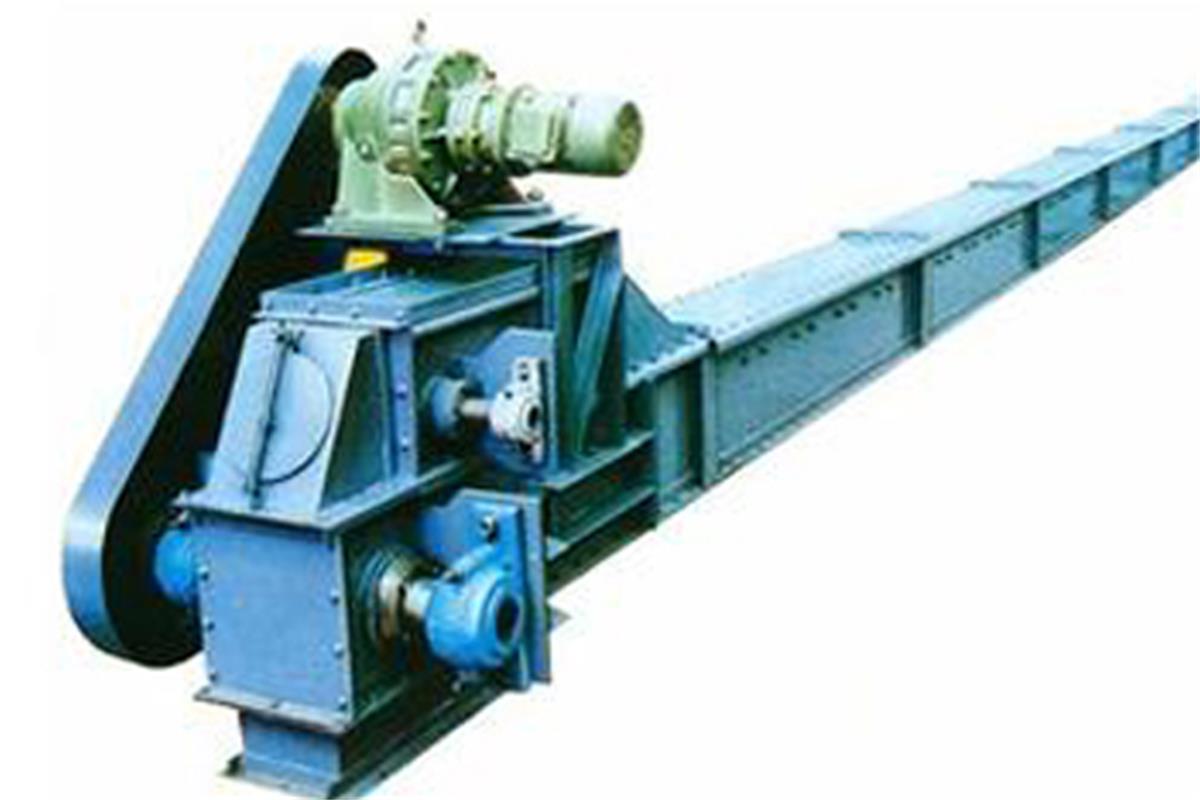 埋刮板輸送機(jī)是一種在封閉的矩形斷面的殼體內(nèi)借助與運(yùn)動(dòng)著的牽引鏈條連續(xù)輸送散狀物料的運(yùn)輸設(shè)備。傳動(dòng)采用減速電機(jī)通過鏈傳動(dòng)與頭部傳動(dòng)軸相連的形式。